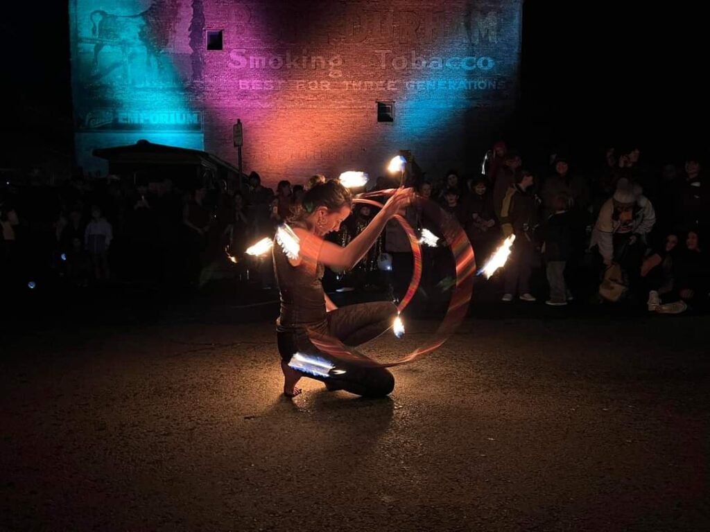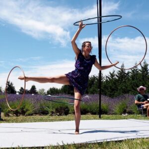 Chana Hoops (Alex Chana Eisenberg) is a dance, performer, and teacher specializing in hooping, juggling, and fire spinning. She loves performing at weddings, birthday parties, festivals, fundraisers, community events, etc, as a solo artist (IG: @chana.hoops), as a part of Feral Fire Flow Collective (IG: @feral.fire), or with her circus team at PopUp Movement (IG: @popupmovement). Busking downtown is one of her greatest joys and she also enjoys being invited to bring her hoops and juggling gear to events so folks of all ages can play and learn. Call, text, email, or DM to talk rates!