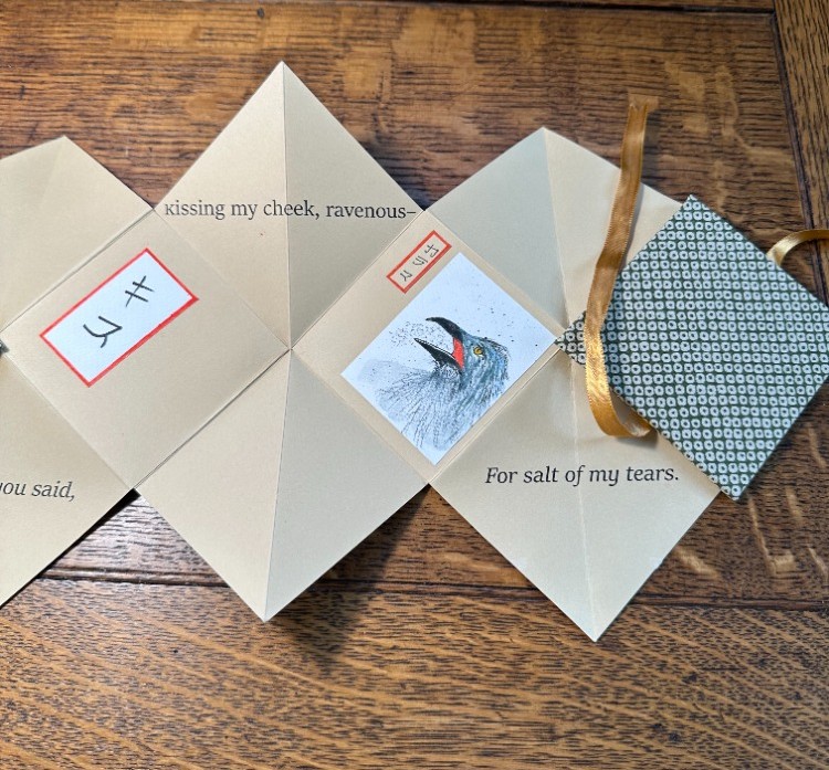 I create small, handbound books of my poetry and art in watercolor and mixed media and have made several of these with personal content for individuals' special occasions.