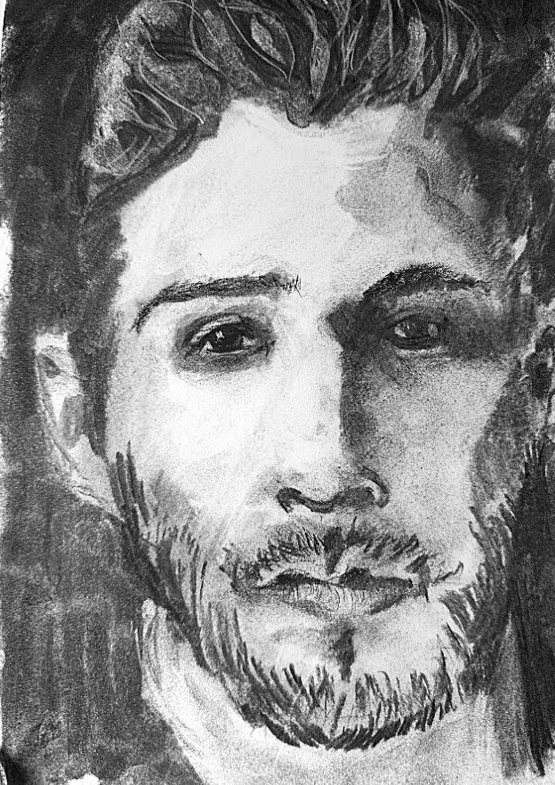 Watercolor pencil and ink; Japanese katakana for "kiss" and "raven"